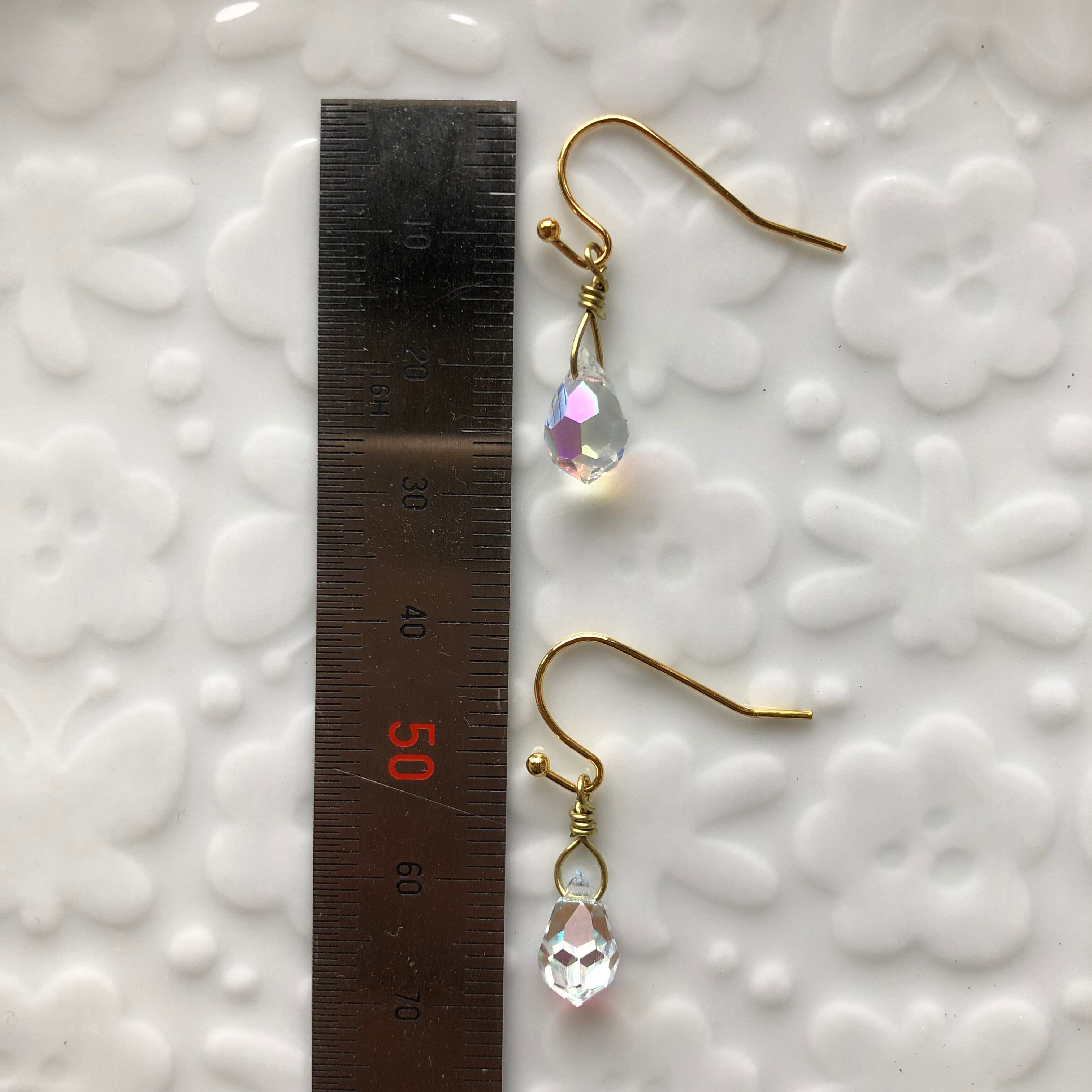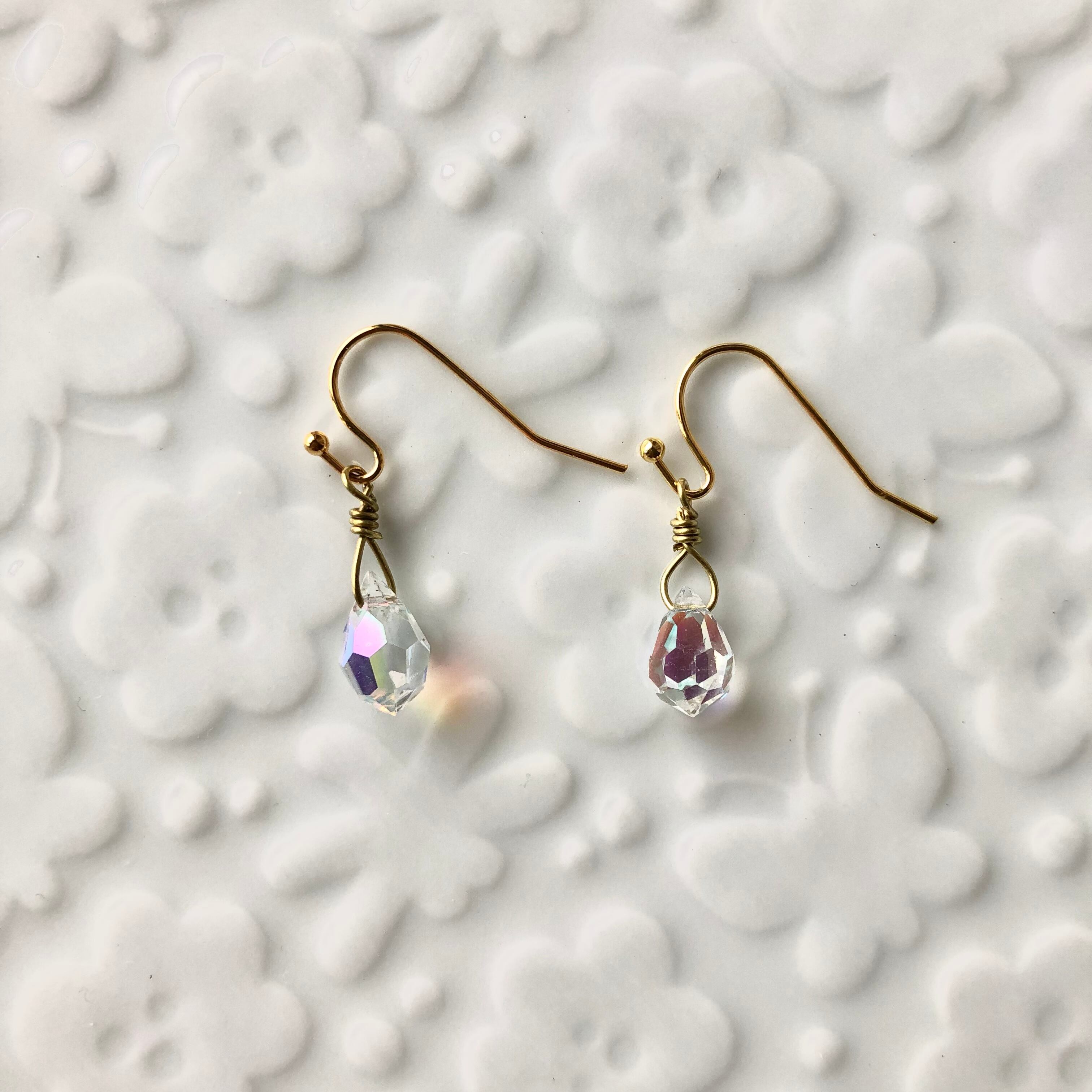 虹色に輝くオーロラガラスのピアスです。