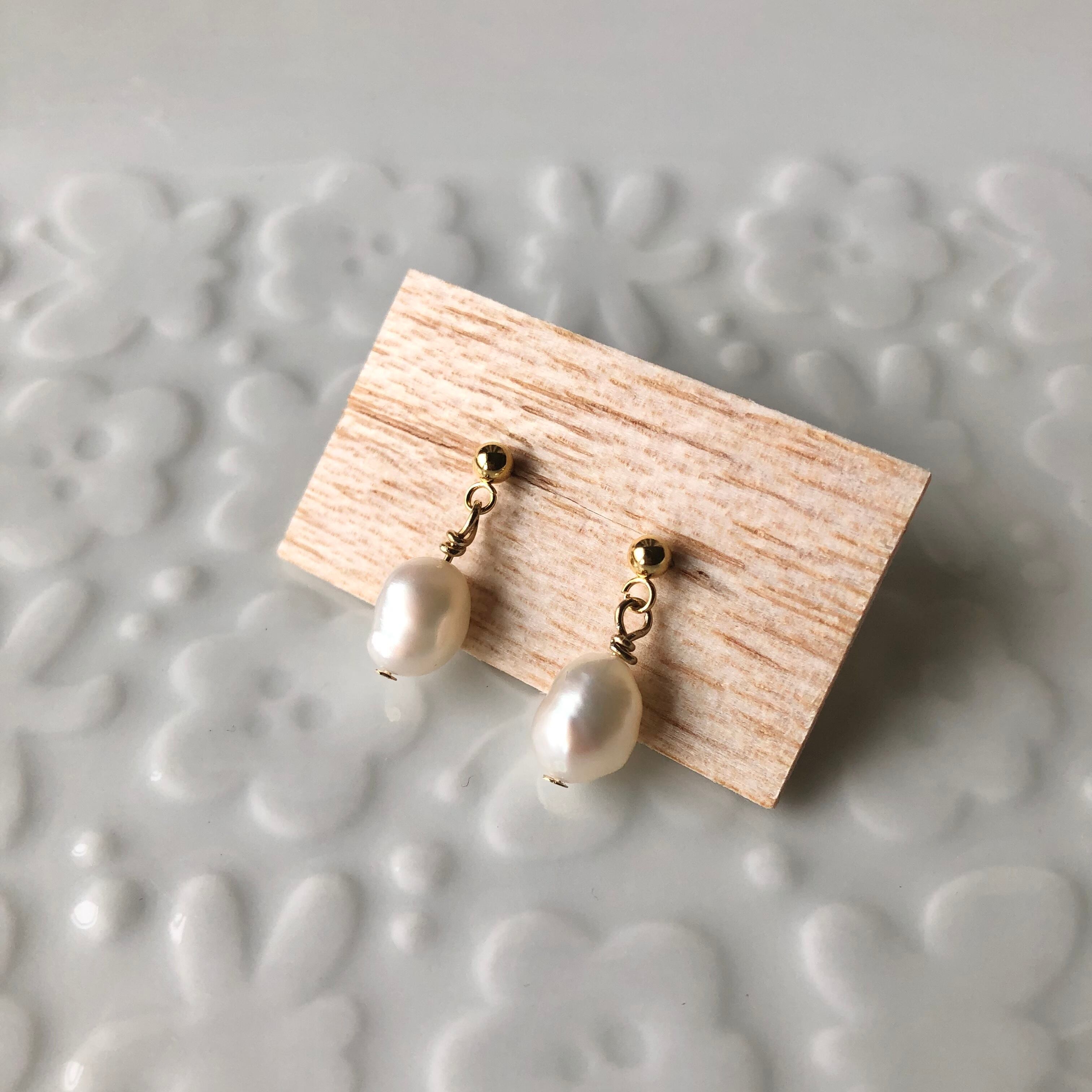 淡水パールを使用したシンプルなピアスです。