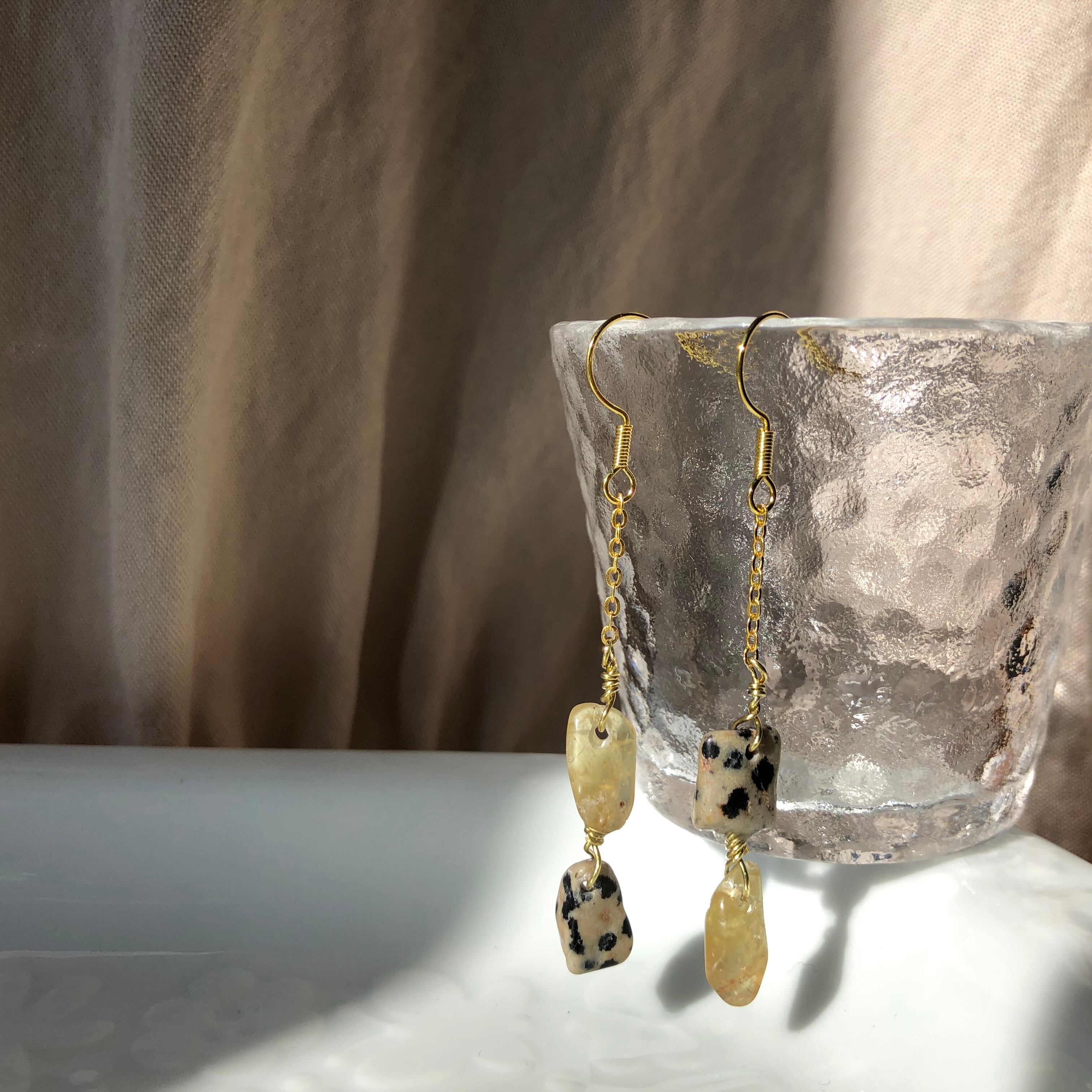 【 No.65 】イエローアパタイトとダルメシアンジャスパーのピアス