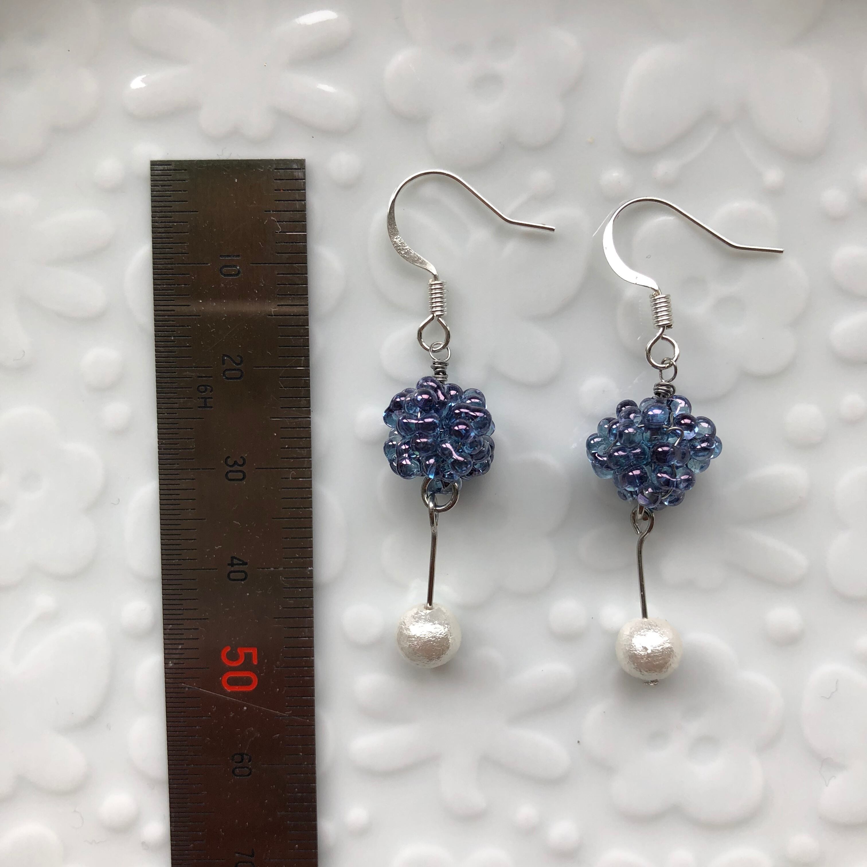 【 No.119 】ブルーベリーとコットンパールのピアス