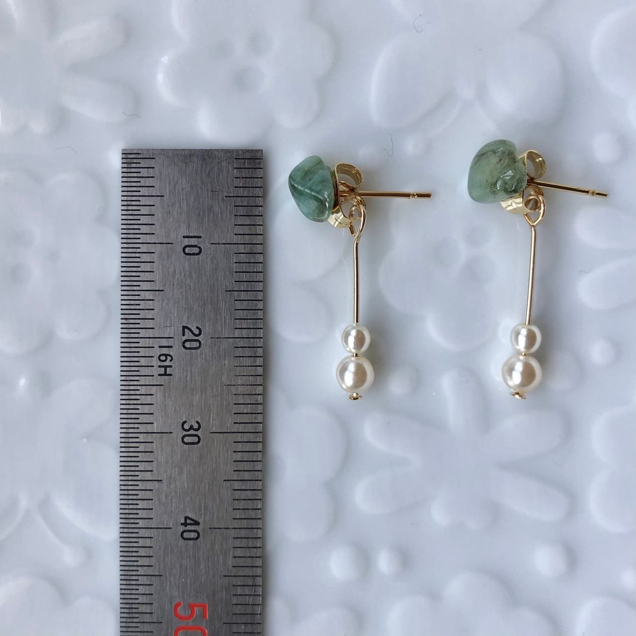小粒のエメラルドとガラスパールを合わせました